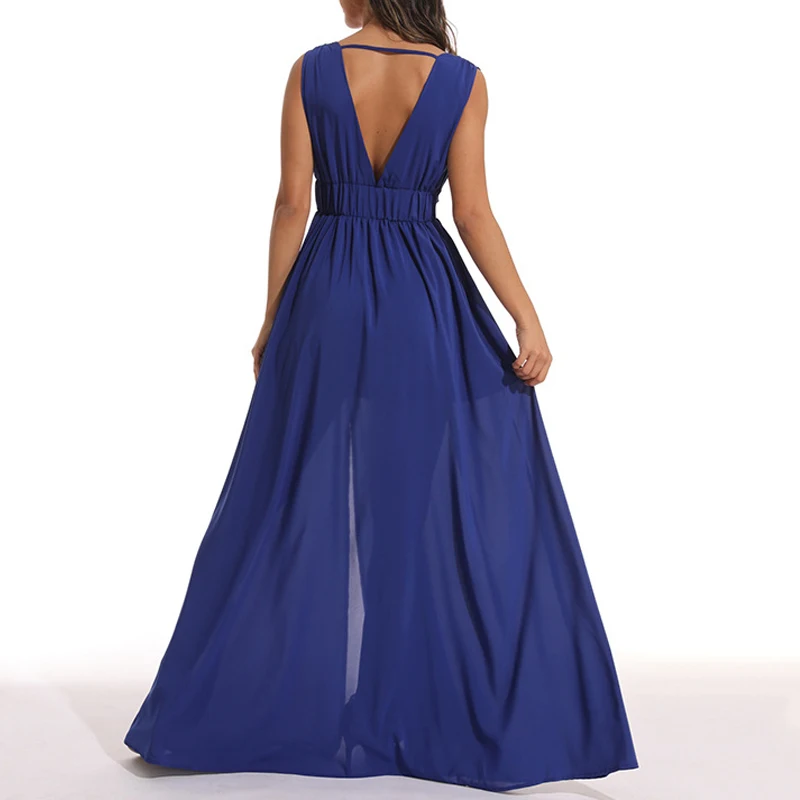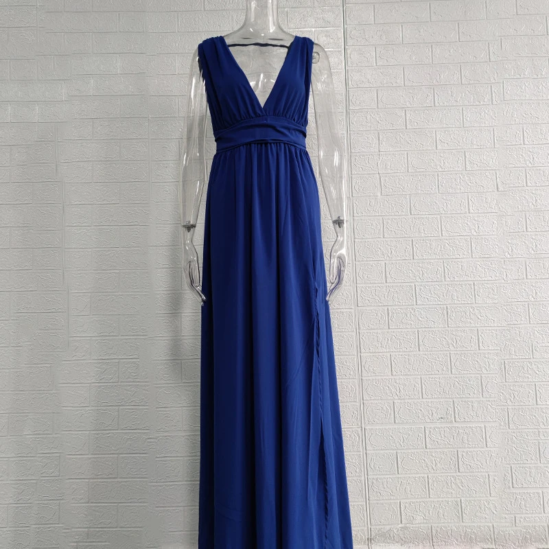 2024 Summer Clothing V Neck Slit Side Sleeveless Casual Women Elegant Party Maxi Dresses
