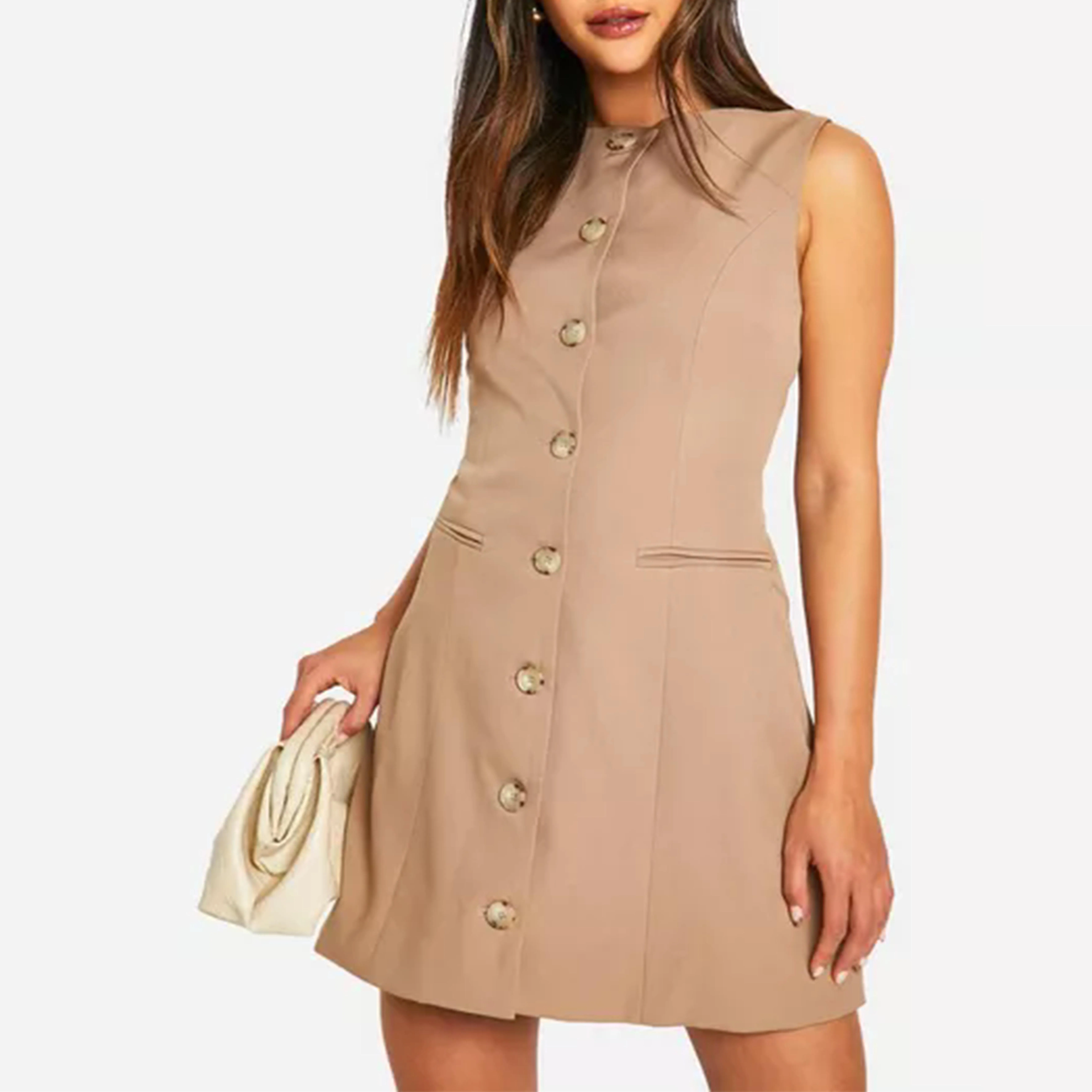 Elegant Slash Neck Midi Ladies Office Shirtdress