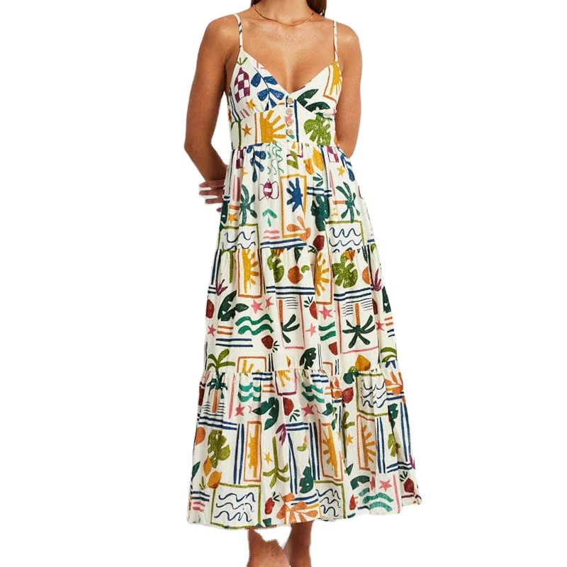 Fashion Clothing Sleeveless Comfy Women Summer Casual Sexy Floral Dresses