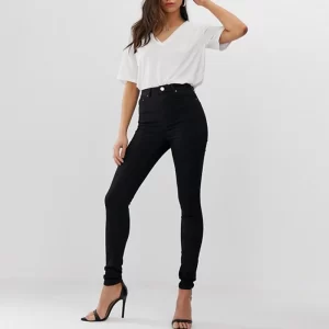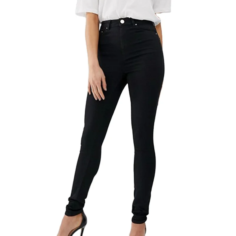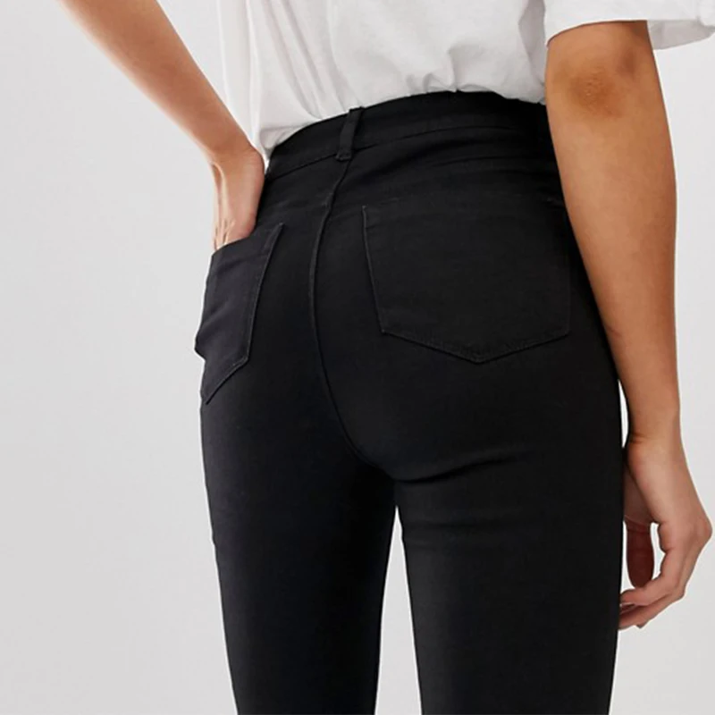 Womens Casual pants high rise waist zipper fly skinny black jeans