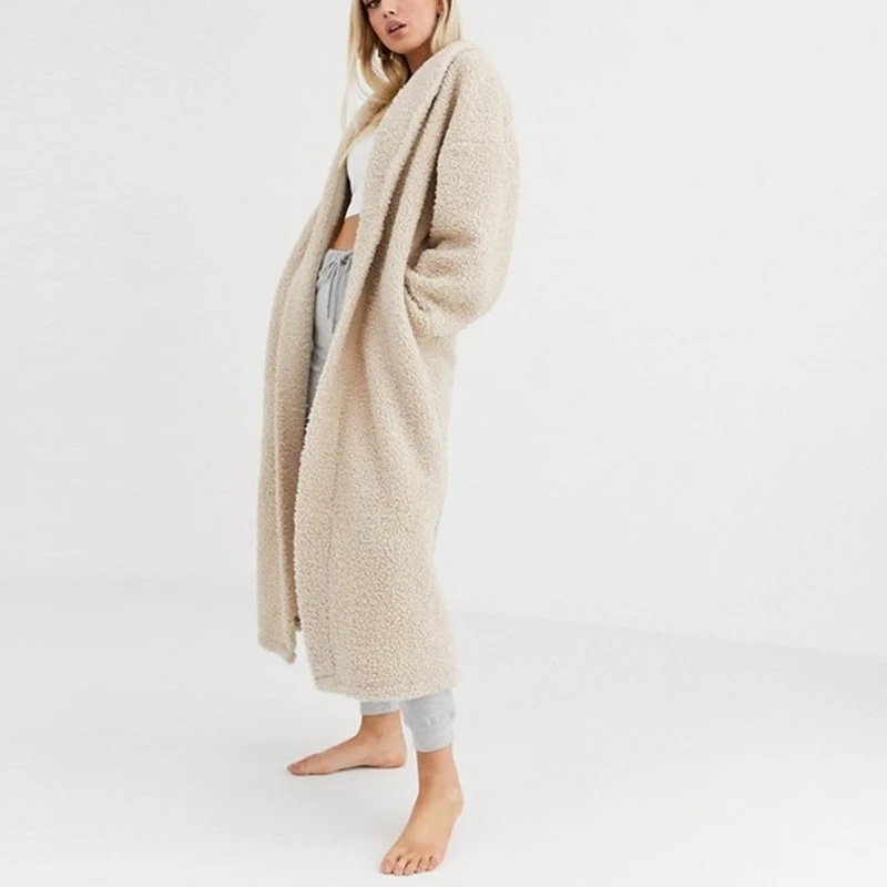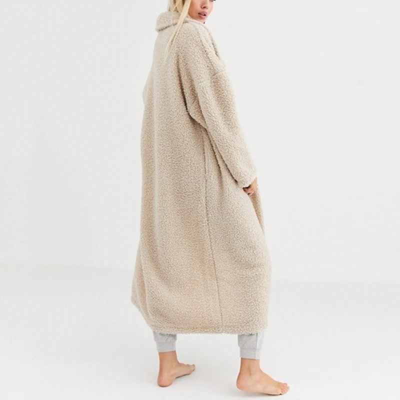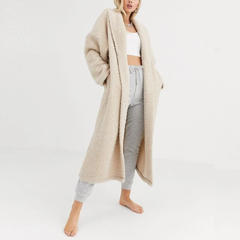 Ladies Heavy Fleece Nightwear Ladies Soft Maxi Robe Shawl Lapels Solid Plain Dyed Plus Size Sleepwear