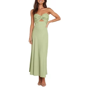 Elegant Strapless Twist Front Midi Dress for Women - Summer Party Outfit