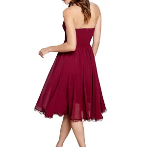 Evening Dress Lady Club Halter Neck Fit-And-Flare Red Midi Elegant Romantic Women Prom Dress